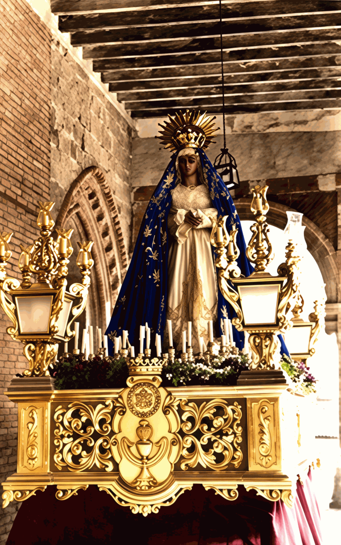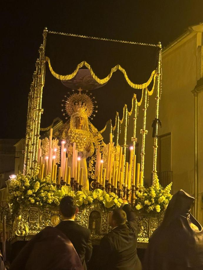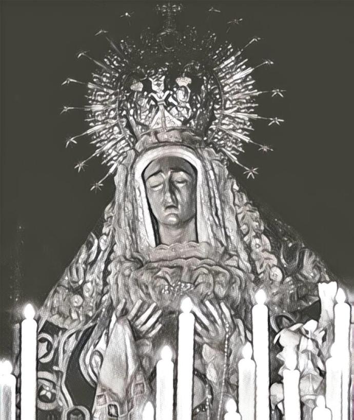 Es una Imagen de Gran belleza y serenidad, que muestra en su rostro, el sufrimiento y amargura de una madre que ve y padece el sufrimiento de su hijo. Recorre las calles de Santisteban en busca de su hijo que carga con la Cruz camino a la muerte y lo encuentra en la Plaza Mayor produciéndose uno de los momentos más esperados de la Semana Mayor de Santisteban el “Encuentro”, donde madre e hijo se encuentran cara a cara.