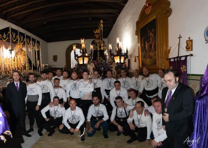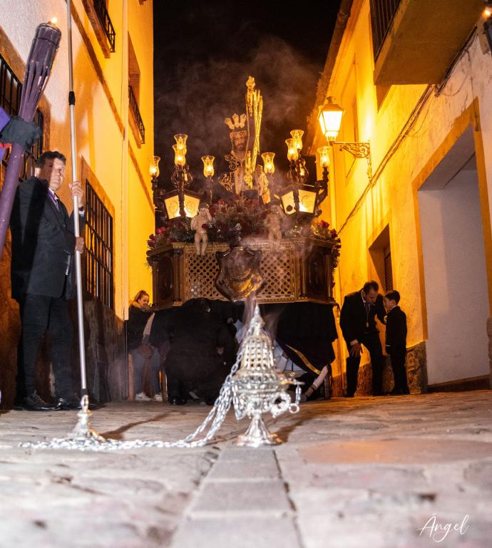 Desde hace un par de años aproximadamente, el paso se ha completado con la imagen del Cirineo que ayuda a Cristo a llevar la Cruz. Imagen realizada por el Imaginero Cordobés Jorge Domínguez.